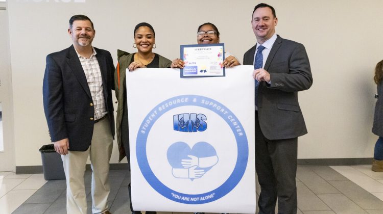 “All of the adults here know how difficult middle school was for us, and for those of us who are parents, for our children. You guys are navigating a very difficult time at middle school, and to be able to bring some joy and to bring some community to people is really inspiring,” Vadala said. “We were very impressed with all the artwork that was done and the message that it sends around being close together, being in the community, being kind to one another.”