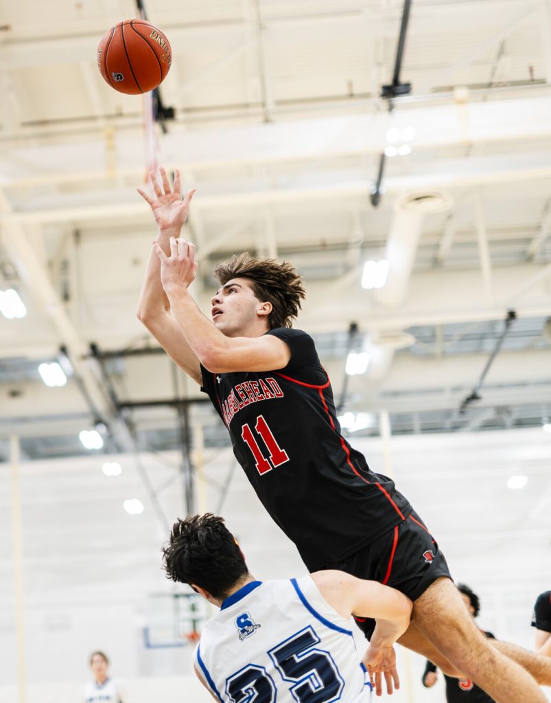 3) Apart from the state championship games at the end of the season, there is nothing better than photographing a classic rivalry game. I found myself in a jam-packed field house at Swampscott High School as the Big Blue boys basketball team took on their arch rivals, Marblehead. Both teams played with intensity and offered some great moments to document, like this frame of Swampscott’s Sam Moscoso drawing a charge as Marblehead’s Rylan Golden flew toward the basket.