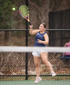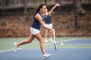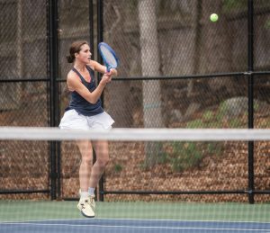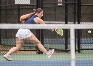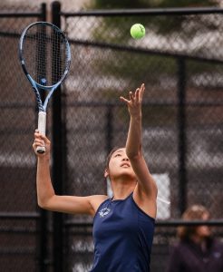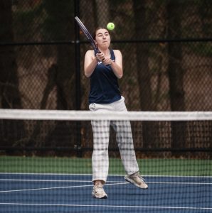 Senior captain Lily Alves led the way with a 6-0, 6-0 win over Ava Mahoney. Sophomore Kami Khiat won at second singles, defeating Quinn Sullivan 6-1, 6-0, while senior captain Vicky McCrann earned a 6-0, 6-3 victory over Diara Holdman at third singles.