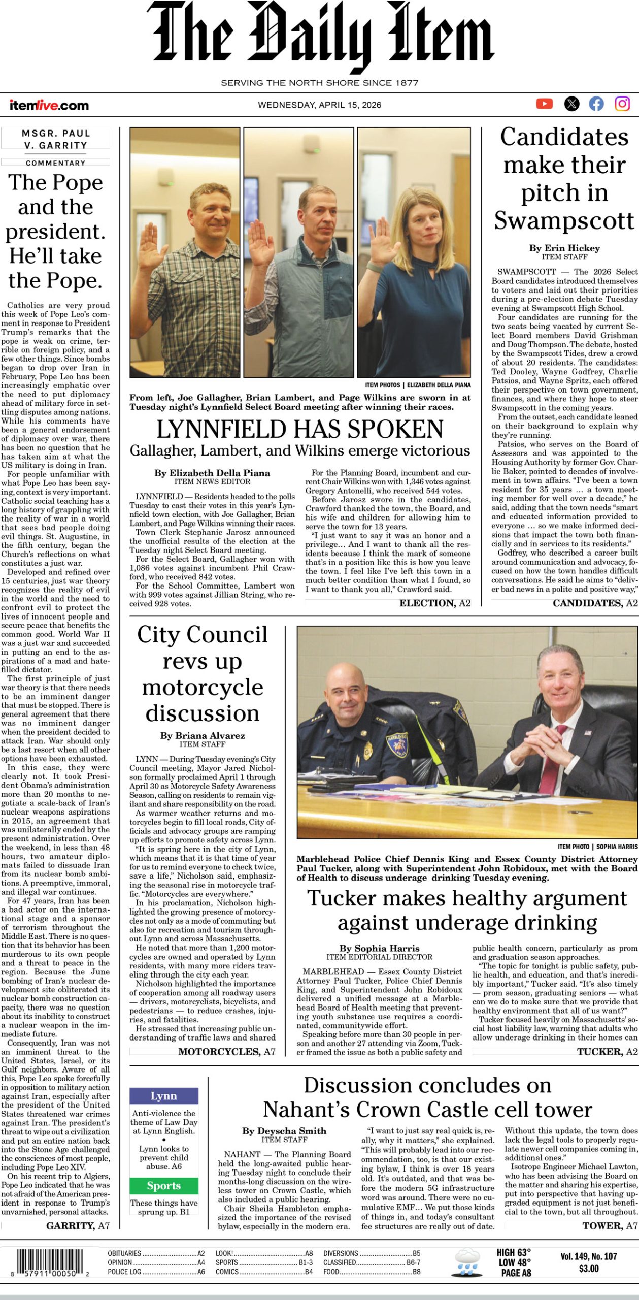 Today’s page 1: 4-15-26 Daily Item StaffApril 14, 2026 by Daily Item Staff Daily Item Staff View all posts Related posts: No related posts.