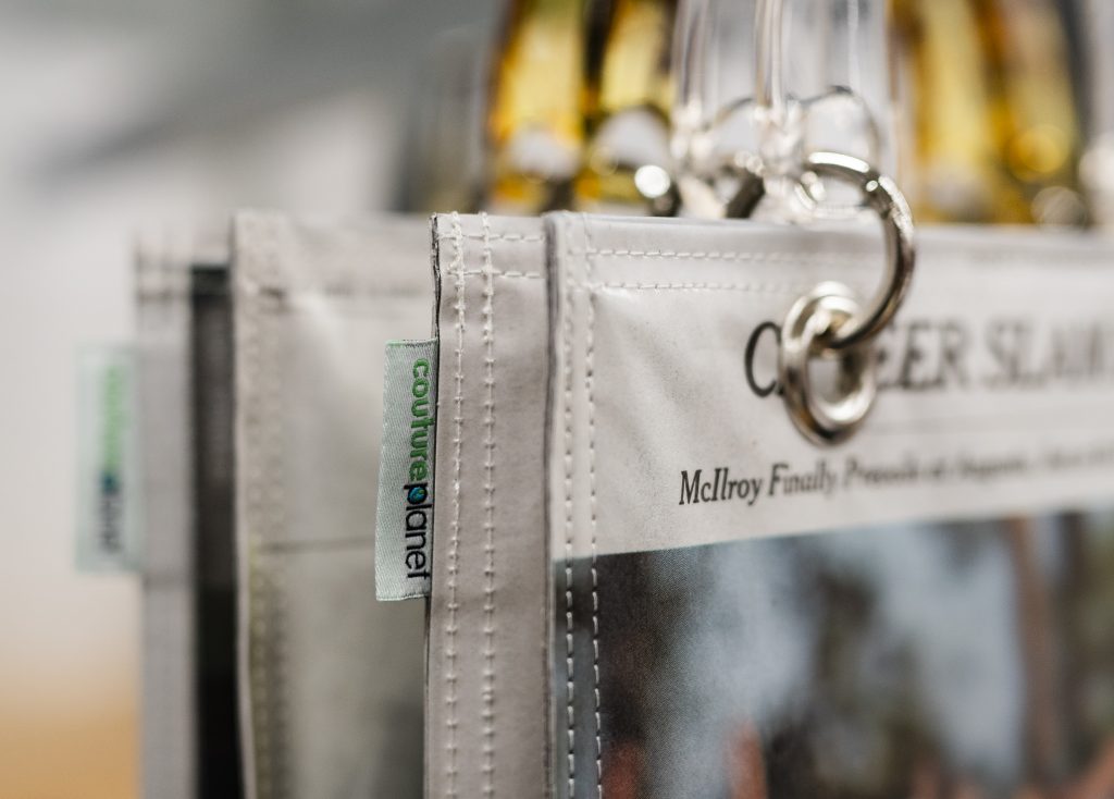 Couture Planet is a women-owned business located in Lynn and run by business partners and owners Kathy Cormier and Michelle Kane. Yesterday’s headlines are being reimagined into something entirely unexpected: handbags. Growing from a recycling project in 2009, Couture Planet creates fashion‑forward handbags and accessories from 100% post-consumer newspapers. There are a variety of different designs ranging from fashion, art, food, travel, sports, and more. Each bag is carefully crafted with a keen eye for layout, color, and storytelling. Not only is imagery a factor in the creative process, but also in regard to how it will fold, where the seams will fall, and how the visuals will align once assembled.
