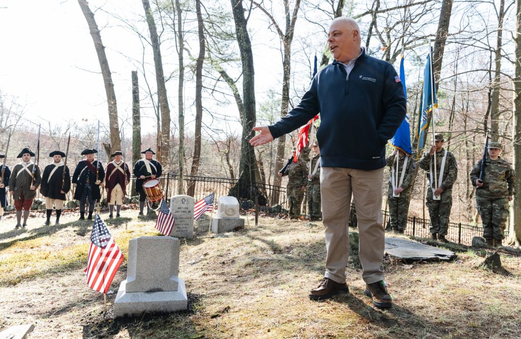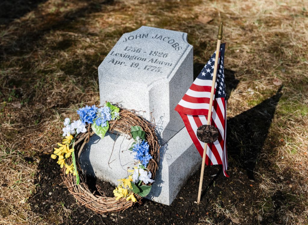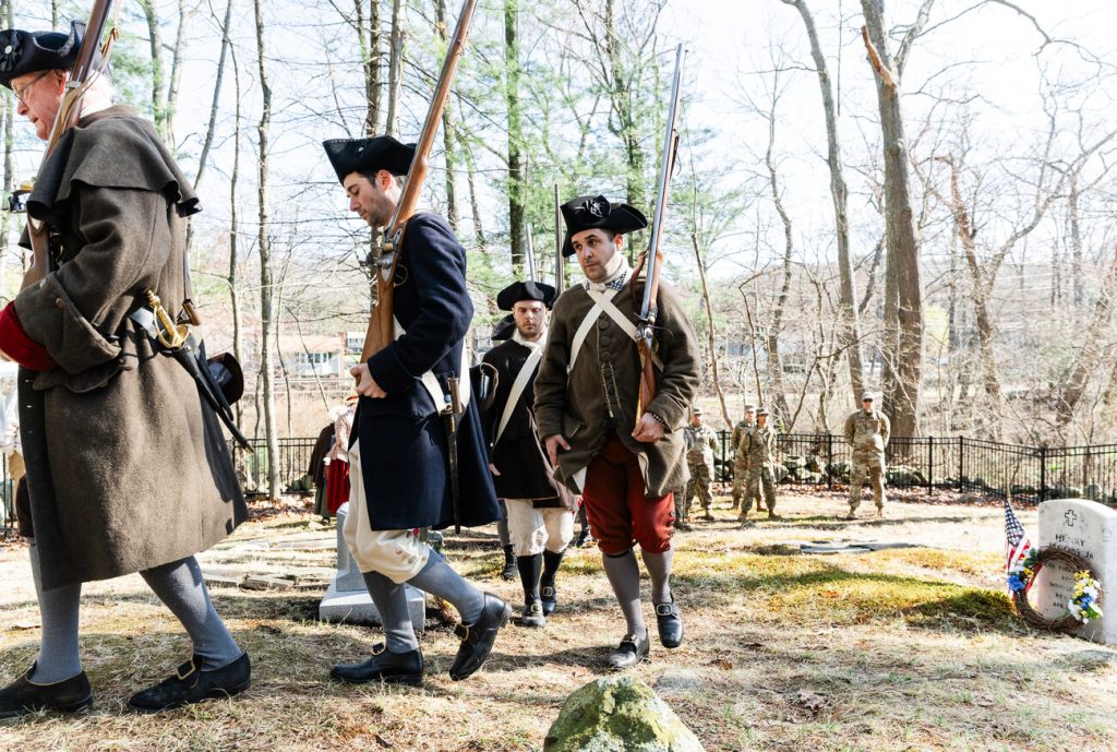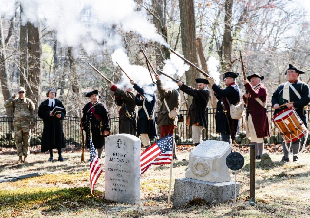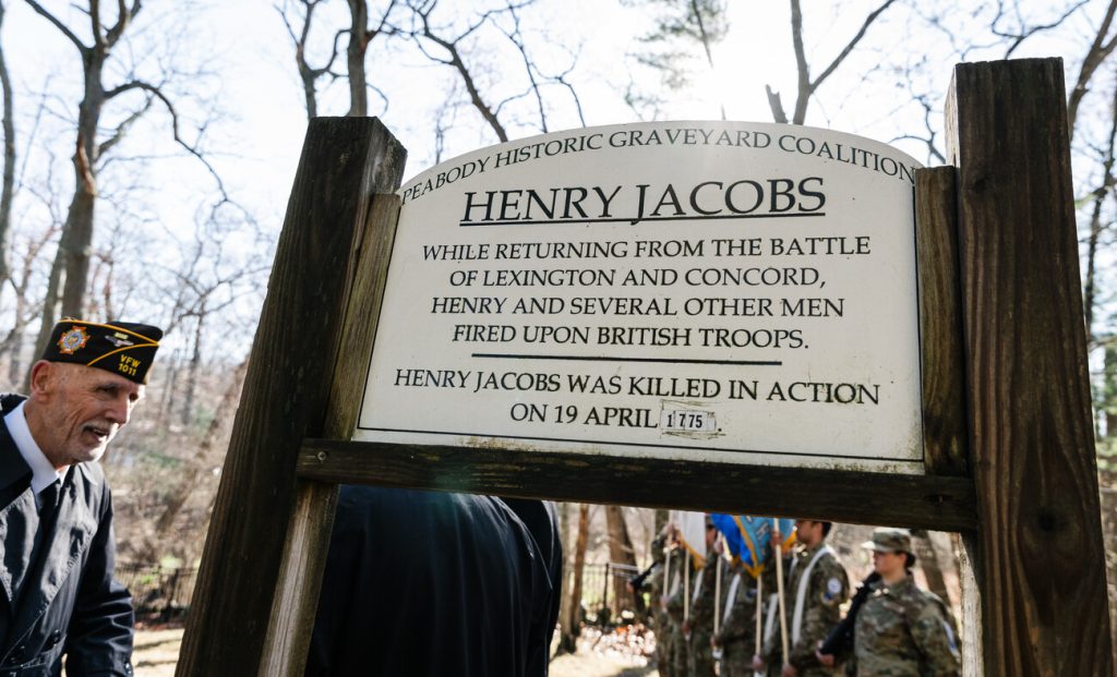 At the Jacobs Family Cemetery, attendees gathered to honor Henry Jacobs Jr., one of seven Danvers men killed on April 19, 1775, and his younger brother John, who survived the fighting and went on to serve in additional battles throughout the Revolutionary War.