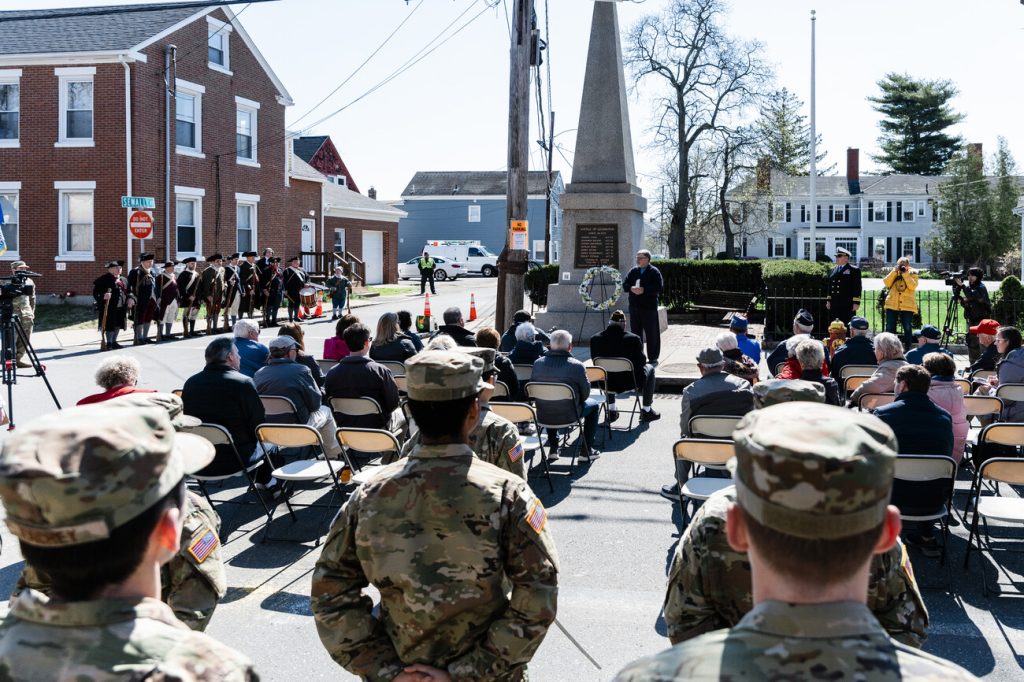 The final stop at the Lexington monument brought the largest gathering of the morning, with a section of Washington Street closed off to accommodate the ceremony. Officials, veterans, and historical representatives offered remarks reflecting on the sacrifice of the men who answered the alarm in 1775.