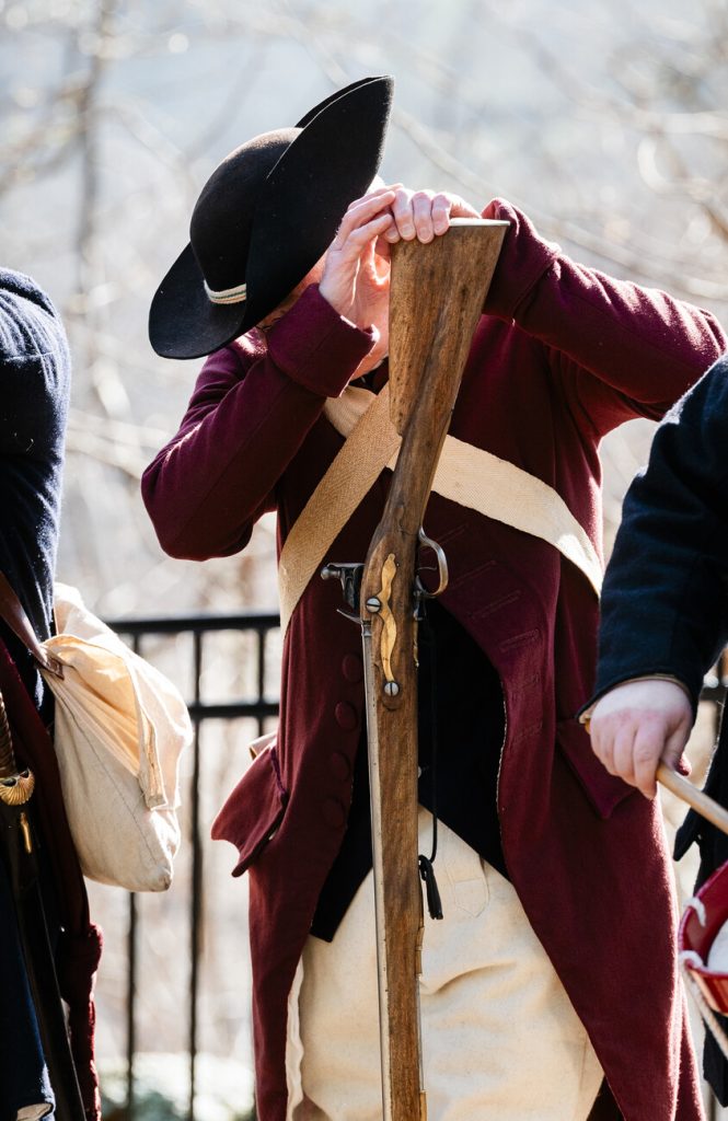 Matthew Mees, a reenactor with the Danvers Alarm List Company, spoke as a chaplain who traveled with the soldiers, reminding the crowd of the recurring commitment to the ideals for which those revolutionary heroes fought.