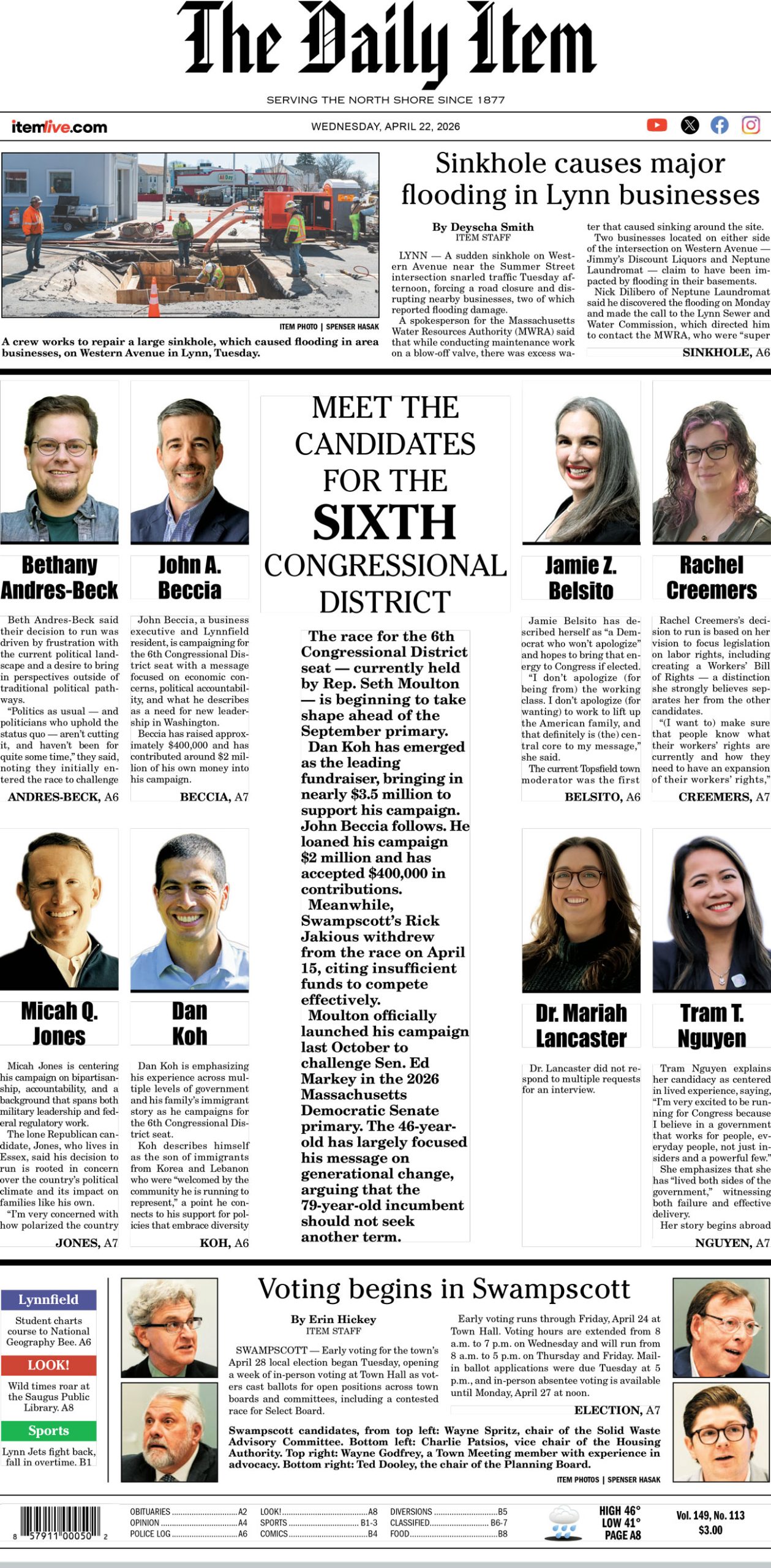 Today’s page 1: 4-22-26 Daily Item StaffApril 21, 2026 by Daily Item Staff Daily Item Staff View all posts Related posts: No related posts.