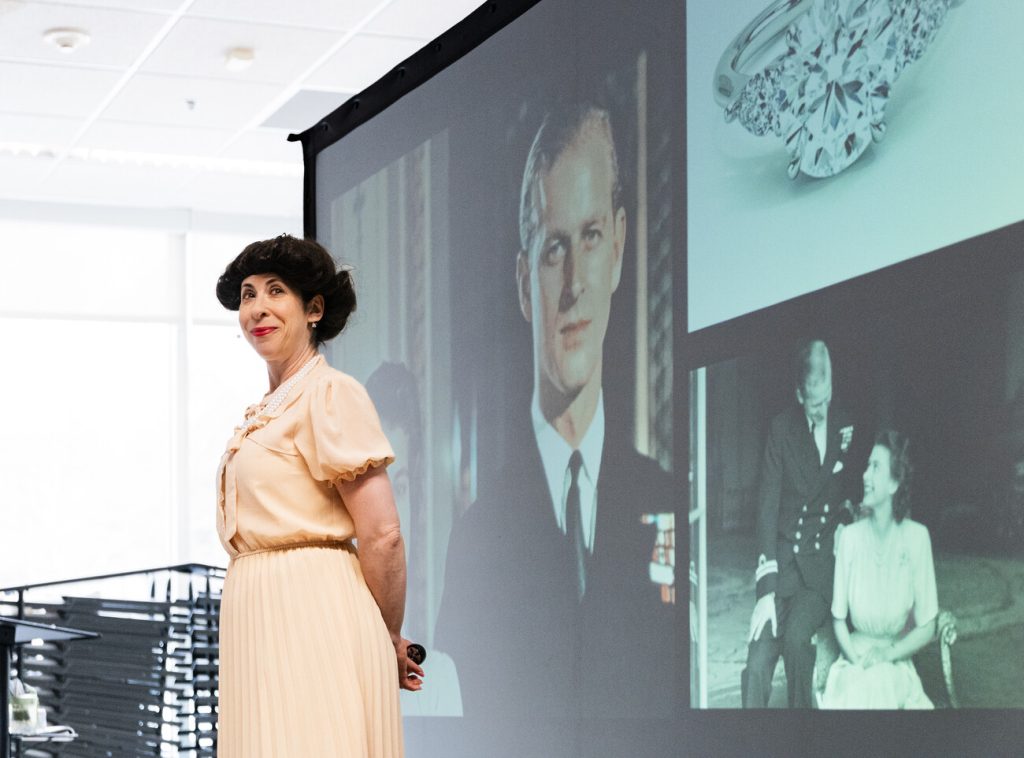 Scenes from World War II, the coronation, and the day-to-day routines of royal life were woven together with moments of humor that kept the room loose. The full audience remained engaged with Faye’s performance throughout, evidenced by fits of laughter during stories of the Queen’s trip to Fiji and an undercover excursion to a local supermarket.