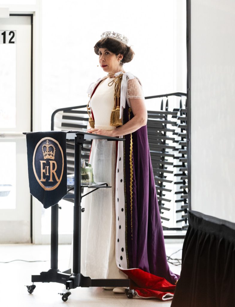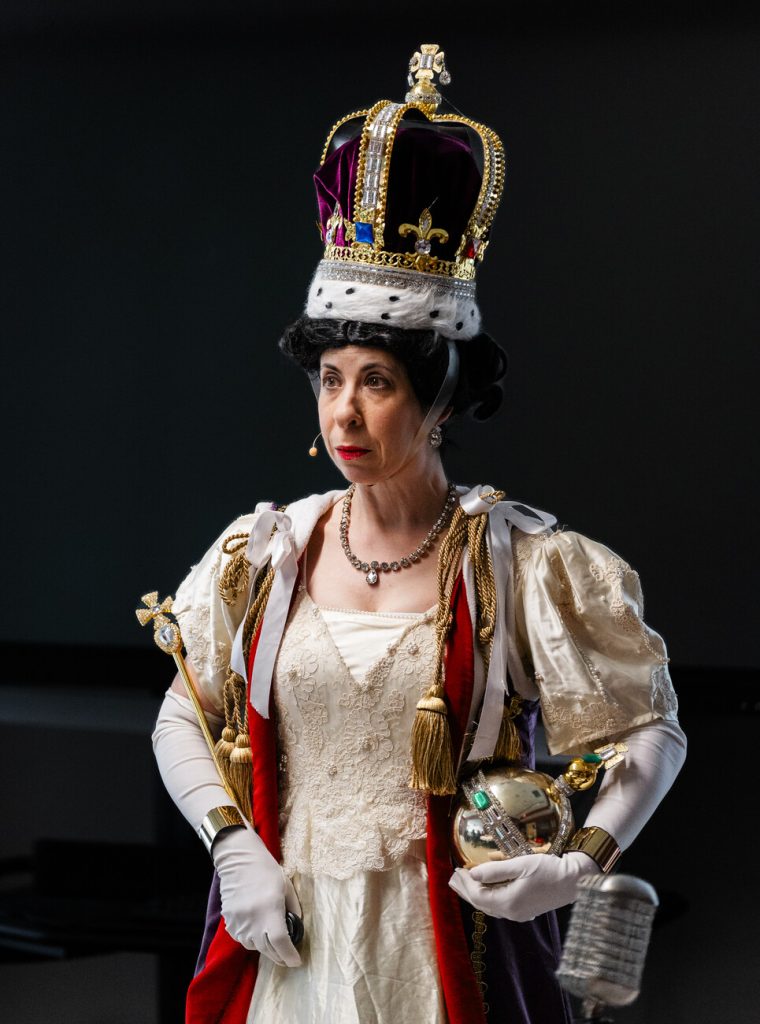 Actress Sheryl Faye moved through the timeline with costume changes, wigs, and props, shifting from a young princess who “wasn’t meant to be queen” to a monarch defined by a sense of duty. That sense of obligation to her regal responsibilities was repeated throughout the performance as the show moved between major historical moments and quieter, more personal ones.
