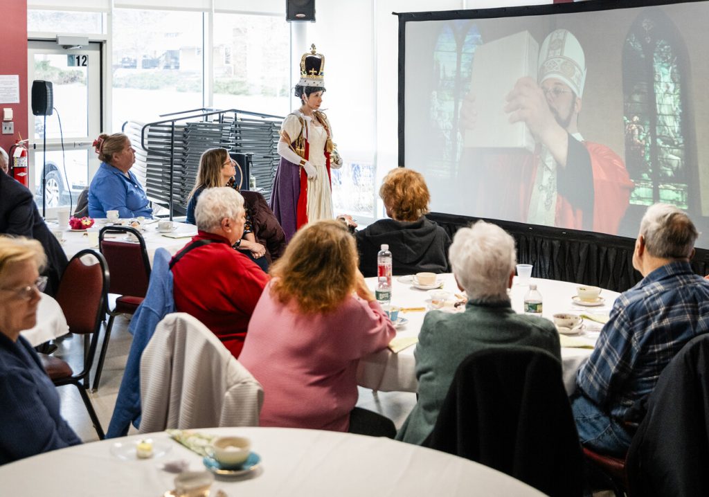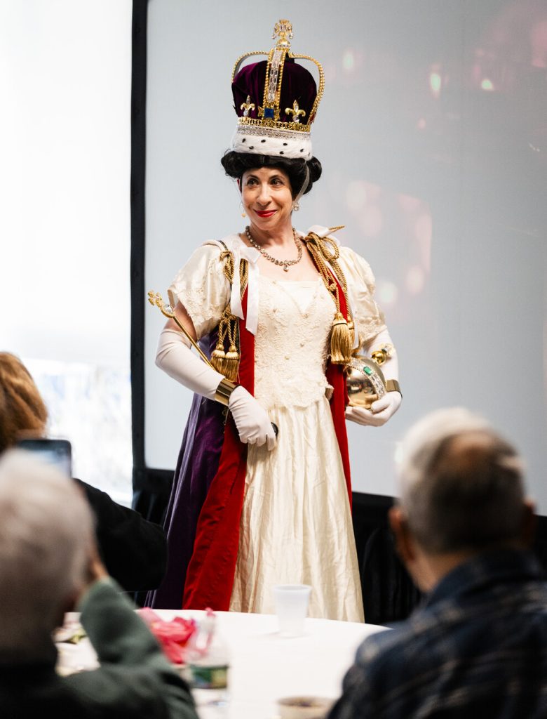 SWAMPSCOTT — For one afternoon, the Swampscott Senior Center took on a regal feel, with fully dressed tables and teacups set out for a one-woman performance that brought the life of Queen Elizabeth II into the room.