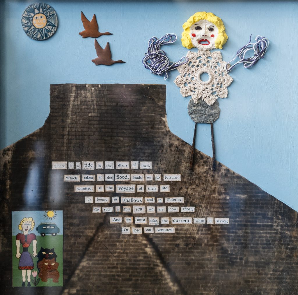 Brown’s process is rarely linear. Sometimes a piece begins with a concept or a title. Other times, it emerges from a chance, a combination of materials that suddenly feels right. Brown describes herself not as a creator, but as a channel, someone who allows the work to come through her rather than force it into existence.