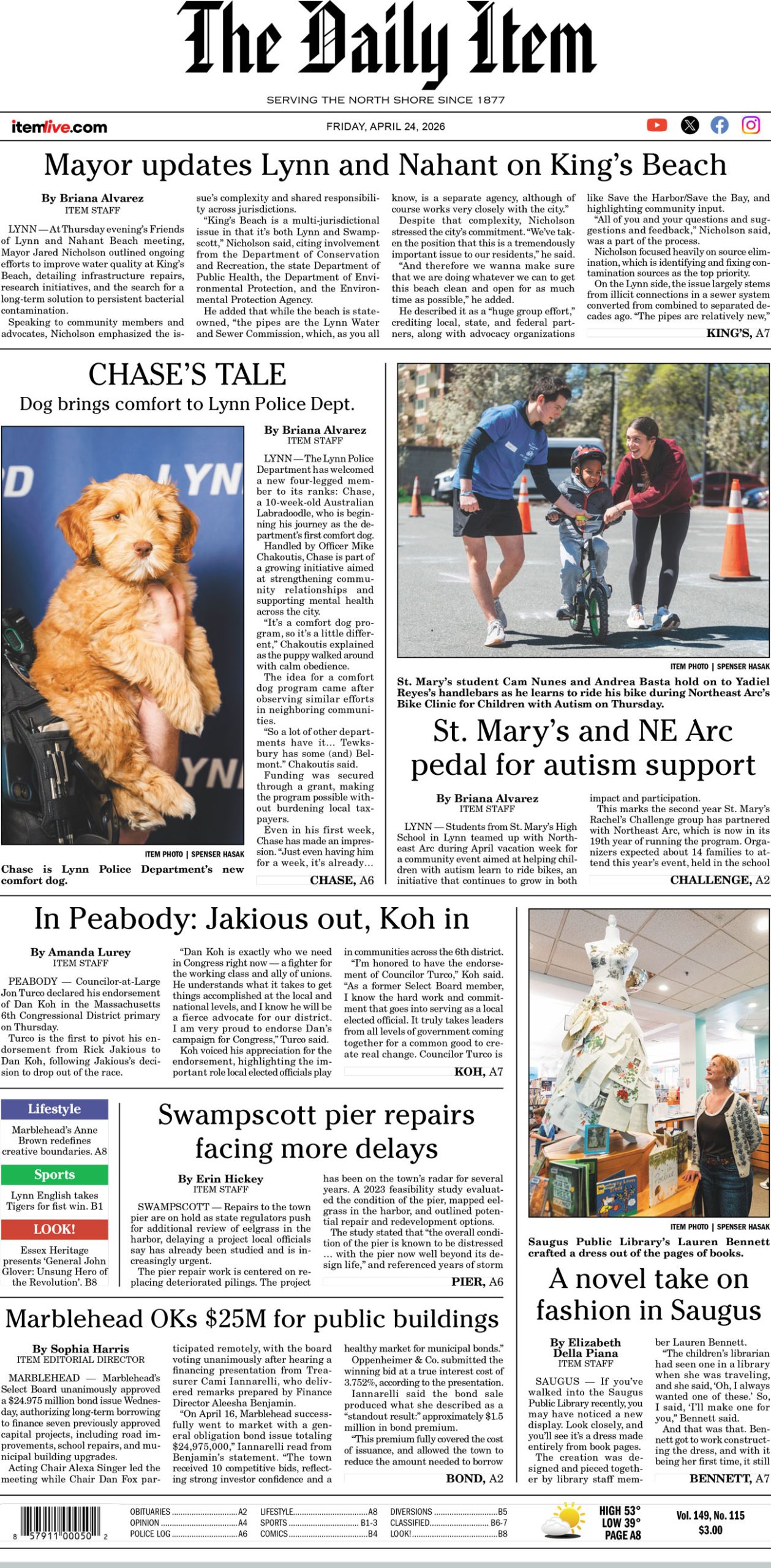 Today’s page 1: 4-24-26 Daily Item StaffApril 23, 2026 by Daily Item Staff Daily Item Staff View all posts Related posts: No related posts.