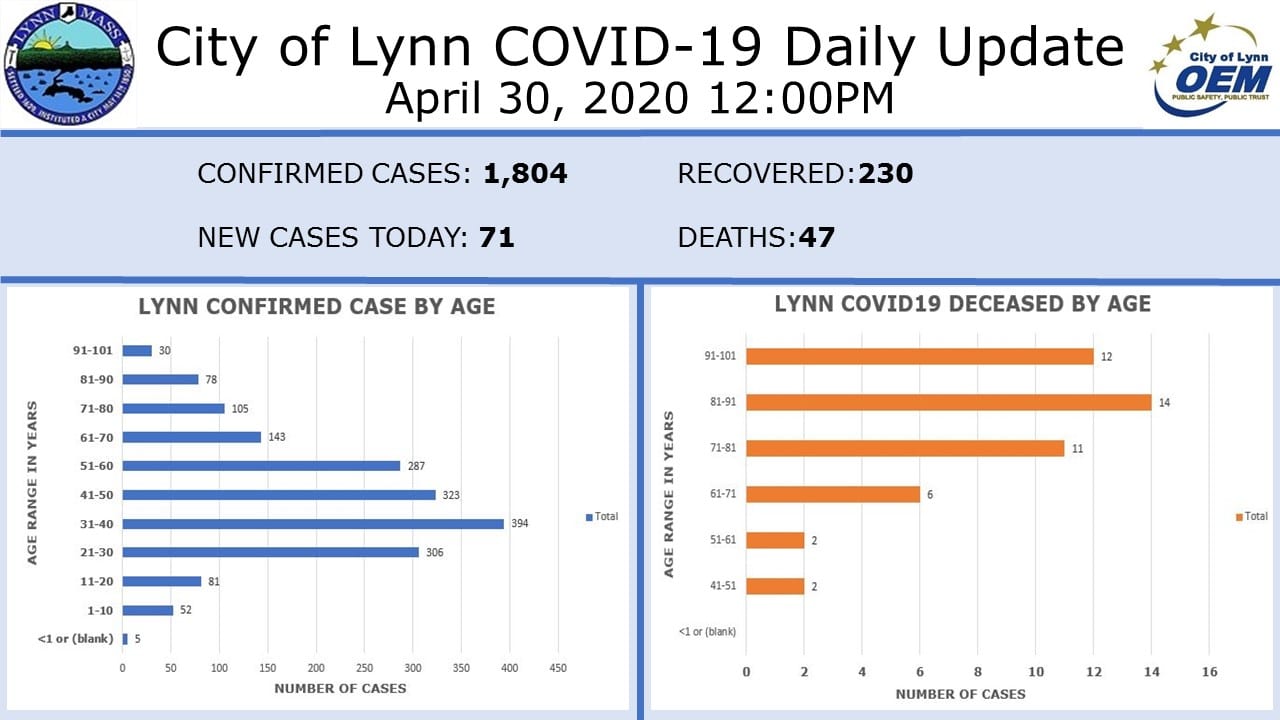 Lynn now has more than 2,000 coronavirus cases, another death has been reported in Swampscott and nine more Peabody residents have died since Monday, according to... Read more.