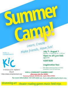 For the ItemLYNN – The Kids in Community (KIC) summer camp program, organized through St. Stephen’s Episcopal Church, is … [Read more...] about St. Stephen’s gets a KIC out of summer