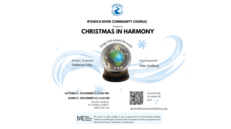 The Ipswich River Community Chorus invites audiences to celebrate the season with Christmas in Harmony: Songs from Around the World, a joyful holiday concert that blends beloved classics with festive traditions from across the globe.