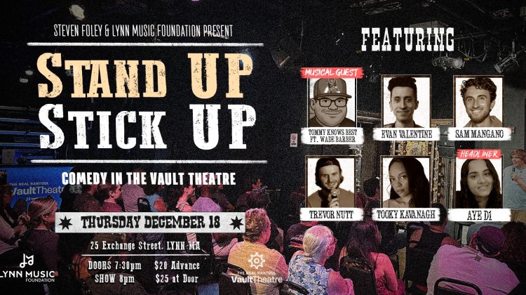 Stand Up Stick Up – Comedy @ The Vault Theatre is a monthly standup comedy show in a former historic bank, now The Neal Rantoul Vault Blackbox Theatre, inside the storied LynnArts building. Every third Thursday, we bring a lineup of New England’s freshest local talent and the best national headliners to Lynn for a night of hilarious standup comedy in an intimate, unique setting. Finally, something fun to do in Lynn! Check out our website to see more upcoming shows, join our mailing list for exclusive promotions, and learn more about the show!